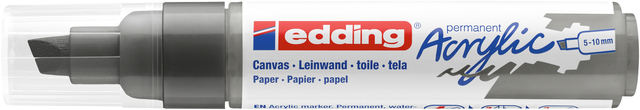 * Acrylmarker om te verven op lichte of donkere oppervlakken, ideaal voor materialen zoals linnen of verfpapier. * De beitelpunt heeft een schrijfbreedte van 5-10 mm. * De hoogwaardige gepigmenteerde acrylverf op waterbasis dekt goed, is lichtecht, geurloos en permanent wanneer de verf droog is. * Verkrijgbaar in 26 verschillende kleuren, in verschillende schrijfbreedtes. * Er zijn geschikte reservepunten (edding 5000 reservepunten) verkrijgbaar.