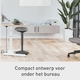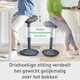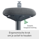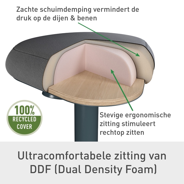 * De Leitz Ergo wiebelkruk met gasveer heeft een unieke DDF-comfortzitting (Dual Density Foam) met een stevige ergonomische kern. De driehoekige vorm lijkt op een zadelkruk, verdeelt het gewicht gelijkmatig over het bekken en is omgeven door zacht schuim om de druk op de dijen en benen te verminderen. De 9cm dikke zitting is ontworpen voor comfort en kan worden gebruikt om te leunen of volledig te zitten. Dit stimuleert gebruikers om meer rechtop te zitten en biedt een ultracomfortabele zitervaring die lijkt op een zitkussen. Deze in hoogte verstelbare ergonomische kruk is ontwikkeld in samenwerking met het Instituut voor Gezondheid en Ergonomie (IGR) en is ontworpen om je thuis of op het werk actief te houden terwijl je staat achter een stabureau, hoge vergadertafel, aanrecht of zit achter een gewoon bureau. De afgeronde schommelende basis van de wiebelkruk stimuleert actieve beweging door te draaien terwijl je werkt, wat je rug en core versterkt en pijn voorkomt. * Producteigenschappen; * Soepel en eenvoudig 25cm in hoogte verstelbaar (57 - 82cm) met één druk op de knop om de perfecte stahoogte in te stellen. * De bekleding van de zitting is gemaakt van 100% gerecycled materiaal en de rubberen antislipvoet zorgt ervoor dat de kruk niet wegglijdt en beschermt de vloer. * Door het lichtgewicht ontwerp en de draaggreep onder de zitting is hij gemakkelijk van kamer naar kamer te verplaatsen en kan hij gemakkelijk onder een bureau worden opgeborgen. * Dankzij het lichtgewicht ontwerp en de draaggreep onder de zitting kan de stoel gemakkelijk van kamer naar kamer worden verplaatst en is geschikt voor een gewicht tot 110kg.