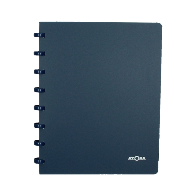 * Adresboek met de gekende Atoma plastic ringen en een zwarte plastic kaft. Dankzij de plastic ringen kan de inhoud van een Atoma adresboek heel eenvoudig verstoken worden. Het adresboek heeft 54 vellen en is voorzien van 26 kartonnen tabs. De kleuren worden in willekeur uitgeleverd. Zwart, blauw, wit en grijs.