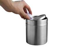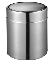 * Mooi vormgegeven tafelafvalbakje van mat RVS. * Het handige vlakke swingdeksel sluit automatisch na gebruik. * Afmetingen Ø121mm en 138mm hoog. * Mat RVS. * Inhoud 1,5liter.