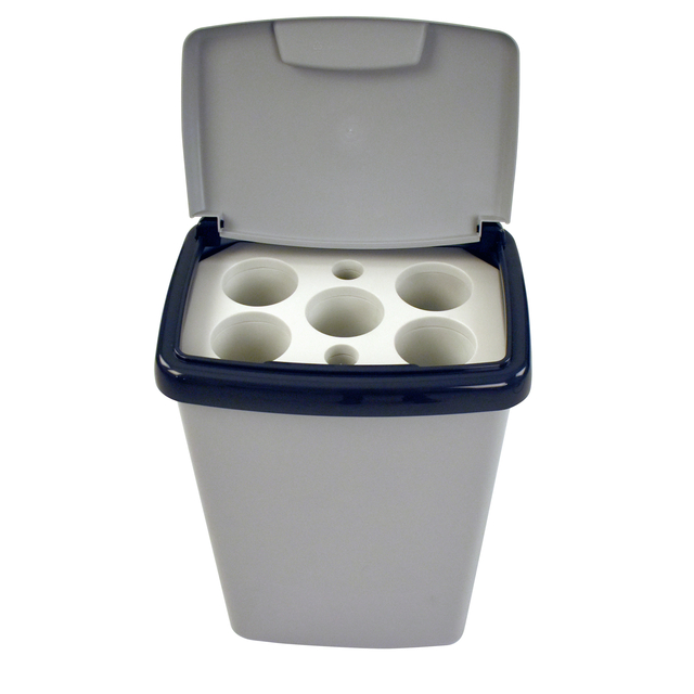 * Maak kennis met de EKO bekerbak 50 liter: dé oplossing voor efficiënt en milieuvriendelijk bekerbeheer! * Deze krachtige en handige opbergoplossing is speciaal ontworpen om bekerafval effectief te beheren. * Met een royale capaciteit van 50 liter biedt de EKO Bekerbak ruimte voor talloze bekers, waardoor je werkruimte schoon en opgeruimd blijft. Daarbij bevat het speciale compartimenten voor het scheiden van deksels en roerstaafjes, waardoor recycling eenvoudig wordt. * Het product is vervaardigd met duurzaamheid in gedachten. Gemaakt van hoogwaardige materialen is het bestand tegen dagelijks gebruik en gaat het lang mee. Bovendien is het ontwerp van de bak aantrekkelijk en eigentijds, waardoor het een aanvulling is op elke kantoor- of horecaomgeving. * De inzet bevat 5 gaten/ buizen met een doorsnede van 85 mm voor het inzamelen van bekers en 2 gaten/ buizen van 35 mm doorsnede voor roerstaafjes. De inzet is netjes afgewerkt zonder scherpe randen, waardoor eenvoudig te legen en schoon te maken.