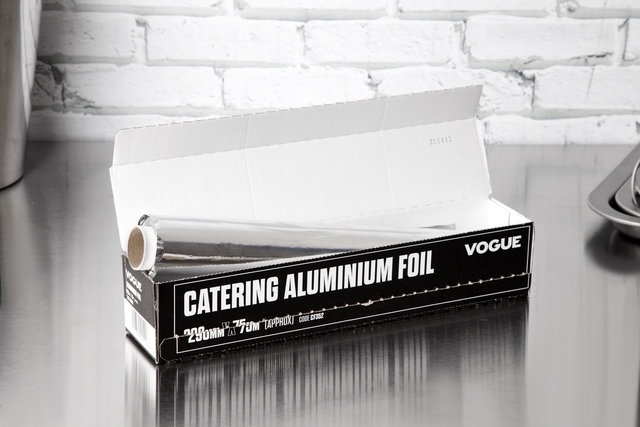 * Praktische en voordelige rol aluminiumfolie met een breedte van 29cm, ideaal voor zowel professioneel als thuisgebruik. De rol heeft een lengte van maar liefst 75m, zodat u er geruime tijd mee vooruit kunt. * Aluminiumfolie is koelingbestendig en beschermt tegen vocht, gas en licht. Het is dan ook ideaal om ingrediënten langer vers te houden, maar kan ook worden gebruikt om vlees na de bereiding te laten rusten, zodat de smaak zich optimaal kan ontwikkelen. * De rol wordt geleverd in een handige dispenser met scheurrand, zodat u eenvoudig een stuk folie op de gewenste lengte af kunt scheuren.