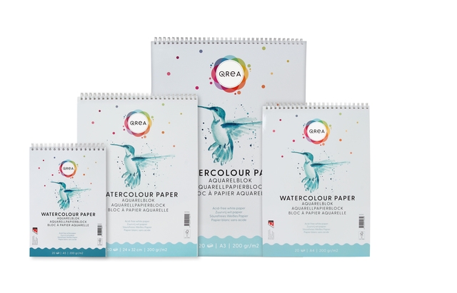 * Of je nu een beginner bent of een professionele kunstenaar, dit aquarelblok van Qrea is geschikt voor iedereen! * Ideaal papier voor de eerste stappen in het aquarelleren en andere natte technieken.* Dit aquarelblok heeft een dubbele spiraal. * Het bevat zuurvrij papier, dat niet vergeelt niet na verloop van tijd. * Het harde karton aan de onderkant zorgt voor optimaal gebruiksgemak. * Afmeting: 24x32cm. * Blok à 20 vellen 200 grams papier. * Diverse formaten beschikbaar. * Geproduceerd in Nederland.