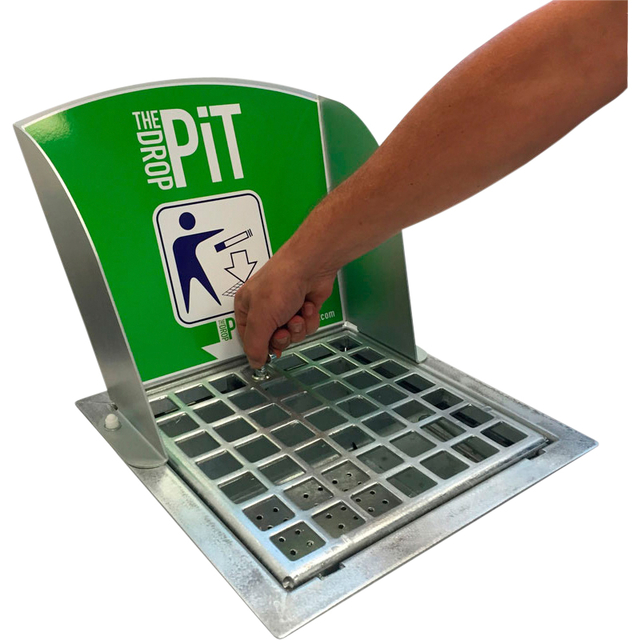* Asbaktegel van robuust corrosiebestendig verzinkt staal voorzien van rooster voor de optimale opvang van klein afval en sigarettenpeuken. * Vervangt een 30x30 cm tegel. * Uitgevoerd met een robuust werpscherm, voorzien van een opvallende kras- en UV-bestendige sticker met wegwerpicoon. * Gepersonaliseerde sticker in eigen huisstijl mogelijk. * Ideaal voor plaatsing bij een ingang tegen een muur, border of kolom. * De tegelasbak is makkelijk te ledigen door het rooster met de sleutel (meegeleverd) te ontgrendelen en de binnenbak, voorzien van hengsel, uit te nemen. * De open bodem en binnenbak met geperforeerde bodem zorgen voor een perfect afwateringssysteem. * The DropPit is uitermate geschikt voor bij de entree van openbare voorzieningen, scholen, ziekenhuizen, sportlocaties, horeca en bedrijfspanden. * Afmetingen: B405mmxL450mmxH425mm.