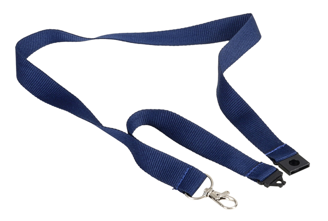 * Badgekoord van textiel voor badge- of pashouders. * Voorzien van een metalen karabijnhaak en kunststof veiligheidssluiting. * Ook geschikt als sleutelhanger. * Lengte 44cm. Breedte 20mm. * Verpakt per 10 stuks. * Kleur donkerblauw. 10 stuk