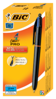 Bic 4 Colours Pro. * Ring voor key-cord. * Volledig zwarte romp voor een professionele look. * Altijd de juiste kleur bij de hand. * Bic balpennen voldoen aan de ISO12757-2 norm. 12 stuks