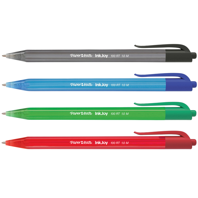 * Maak iedereen vrolijk met levendige kleuren! * Paper Mate InkJoy 100 RT intrekbare balpennen hebben een soepel, snel intrekkend schrijfsysteem dat de inkt gemakkelijk verspreid, zodat schrijven nooit moeilijk is. * Fleur elke pagina op en maak schrijven leuker met Paper Mate InkJoy-balpennen.