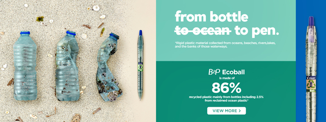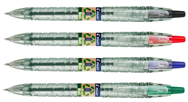 * Nieuw is de Pilot B2P Ecoball, gemaakt van 86,64% gerecyclede plastic flessen, waarvan 2,5%** gerecycled oceaanplastic. * Het gerecycled materiaal komt voornamelijk van plastic flessen (verbruiksgoederen uitgezonderd). * Teruggewonnen plastic uit oceanen, rivieren, meren, waterwegen en van stranden en oevers. * Dit plastic wordt gerecupereerd door onze partner Terracycle, wereldleider in recycleren. * Een doeltreffende, leuke en vernieuwende manier om oceaanvervuiling tegen te gaan. * Samen kunnen we een verschil maken en ons steentje bijdragen om onze planeet en haar grondstoffen te beschermen. * Deze intrekbare en hervulbare balpen biedt een hoog schrijfcomfort.* Draag je steentje bij door de pen minstens 3 keer te hervullen, dan zal je ook de CO2-uitstoot compenseren! * Vanaf de productie tot het einde van de levensduur zorgt de aankoop van deze Begreen pen en het 3 maal hervullen ervan, voor een vermindering van de milieu-impact. * Een klein gebaar kan een belangrijk verschil maken in onze strijd tegen klimaatverandering! * Display met 60 stuks. * Schrijfbreedte 0.27mm - kogelbreedte 1mm.