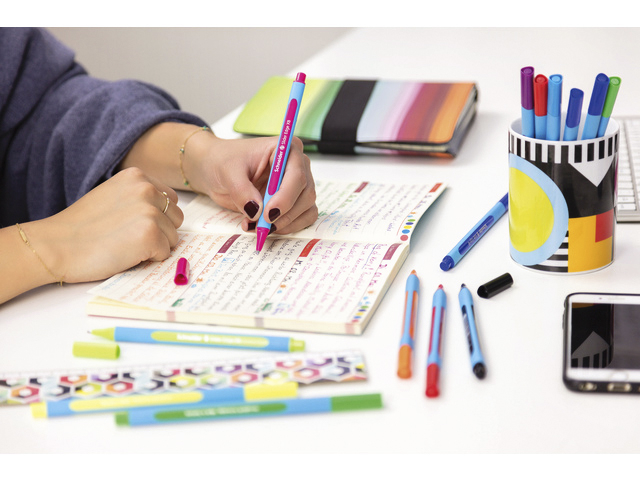 * Balpen met rubberen 3-kantige schacht voor ontspannen schrijven. * De dop kan omgedraaid worden. * De slider Edge kan niet rollen op het buro en de slanke uitvoering past goed in een pennenlade of penetui. * Dankzij de Visoglide Technologie glijdt de Slider Edge zeer soepel over het papier. * Schneider is Emas gecertificeerd. * Schrijfbreedte 0,6mm - kogelbreedte 1,4mm. 1 stuk