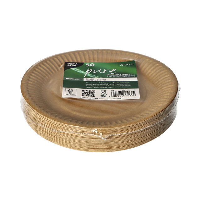 * Stevig bruin kartonnen bord met een diameter van 19cm.* Aanrader voor o.a. op feestjes of barbecues. * Het artikel is plastic vrij. * Inhoud van de verpakking 50 stuks.