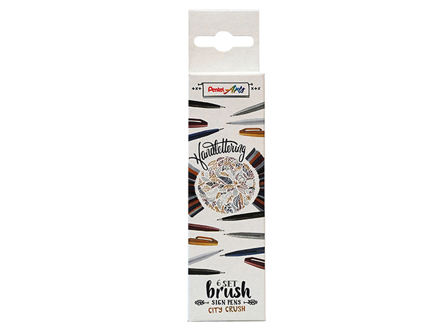* Pentel Brush Sign set City Crush. * Deze set bevat 6 kleuren. * Dankzij de flexibele vezelpunt van de Pentel Brush Sign Pen zijn variabele lijndiktes mogelijk, afhankelijk van de druk. * Met zijn fijne flexibele punt is het de ideale pen voor schetsen, illustreren, handlettering en kalligrafie op kleine schaal. * Gemakkelijk te hanteren en daarom bijzonder geschikt voor beginners. * Inkt op waterbasis. * In metaal gevatte zeer robuuste punt. * Niet navulbaar.