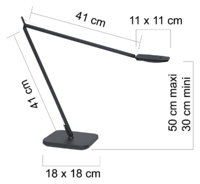 * Zeer fraaie bureaulamp met daglichtkwaliteit. * Moderne strakke vormgeving in combinatie met functionaliteit. * Assymetriche lichtinval voor verlichten van groter oppervlak met voldoende lichtsterkte. * Lamp schakelt automatisch uit na 5uur. * Arm verstelbaar in verschillende hoogtes en lampenkap kan verschillende posities worden geplaatst. * Met dimmer bovenop om lichtsterkte zelf te bepalen. * Door 2 scharnieren optimaal instelbaar. * Armlengte 2x410mm. * Hoogte 650mm. * Voet 180x180mm. * Lampkop 110x75mm. * Led 5,6W. * Licht 520 Lumen. * 3000K warmwit. * Brandduur 40.000uur. * Kabel van 1,9m.* Energielabel G