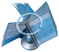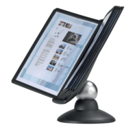 * Soepel draaiende tafelmodule met 10 zichtpanelen in A4-formaat. * Kwalitatieve en stabiele basisvoet die 360° kan draaien en ook zorgt voor een variabele leeshoek. * Daardoor kunnen de zichtpanelen gemakkelijk al staand of al zittend geraadpleegd worden. * Geleverd met ruiters en blanco inserts. * Met 5 jaar garantie. 1 stuk x 1 set