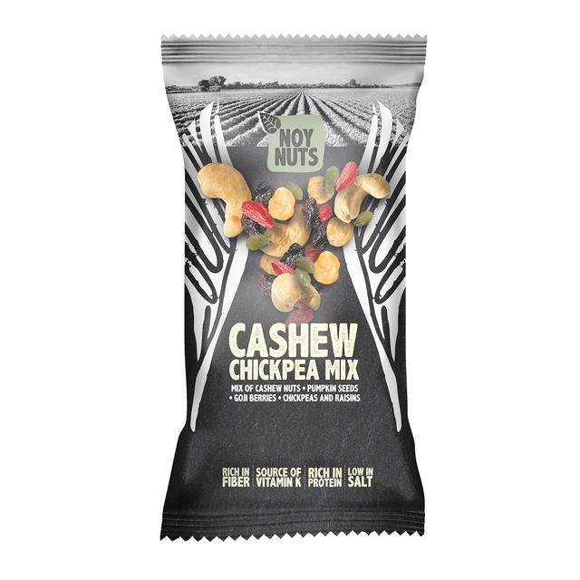 * Cashew Chickpea Mix met verschillende soorten noten, peulvruchten en gedroogd fruit. Van nature zitten kikkererwten vol eiwitten en vezels. Ook bevatten ze rauw relatief weinig calorieën, wat ze niet alleen erg populair maakt bij vegetariërs en veganisten, maar ook in de fitnesswereld. Daarnaast zitten er veel mineralen zoals calcium en magnesium in.