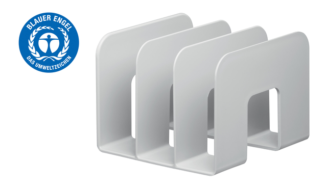 * Catalogusrek voor flexibel gebruik (boeken, schriften). * Gemaakt van gerecyclede kunststoffen die voldoen aan "Blauwe Engel" kwaliteit. * Drie compartimenten, elk 65 mm breed. * Gemakkelijk inzetten en uitnemen van catalogi. * Voor tijdschriften, brochures en catalogi, enz. * Afmetingen: 215 x 165 x 210 mm (B x H x D).