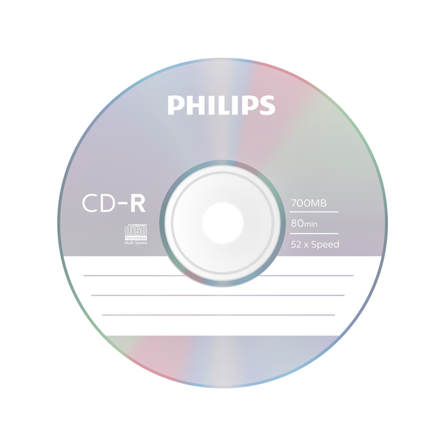 * Philips - uitvinder van de CD/ DVD-technologie - heeft een zeer groot aanbod opneembare CD-R media. * Deze compact discs zijn een kostenefficiënt medium voor het maken van back-ups of het overdragen van bestanden zoals foto’s en muziek. * Geschikt voor het branden op een snelheid van 52x. * Mediatype: CD-R. * Opslagcapaciteit: 80 Minuten, 700MB. * Schrijfsnelheid: 52X. * Type verpakking: Spindel. * Inhoud: 100 discs.