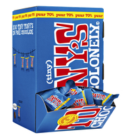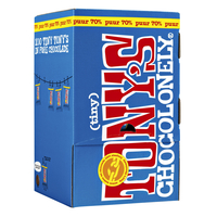 * Deze bescheiden chocolaatjes doen het prima bij de koffie, thee en zelfs bij de chocolademelk. * Je kunt goed dooreten wanneer je zo’n dispenser in huis haalt, want deze bevat ongeveer 100 chocolaatjes van 9 gram. * Met Tony's Chocolonely maakt u een belangrijke stap richting 100% slaafvrije chocolade. * Verder kopen ze de ingrediënten waar mogelijk Fairtrade-gecertificeerd in en doen we ons best om op alle vlakken een stap vooruit te gaan. 1 doos à 100 stuks