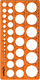* Cirkelsjabloon van schokbestendig materiaal. * Voorzien van inktvoetjes. * Cirkels 1 tot 35 mm. * In een ophangbaar zakje.