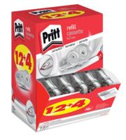 Navulling Pritt Refill Cassette flex. Pritt Refill Cassette flex maakt correctiewerk eenvoudig en precies. Met maar liefst twaalf meter hoogwaardige correctietape beschikbaar in twee breedtes: 4,2 mm voor getypte tekst en 6,0 mm voor handgeschreven tekst, biedt het soepele en schone correcties. Dankzij de nieuwe flexibele penpunt kun je zonder wachttijd direct overschrijven. Het bandoprolmechanisme beschermt de correctietape, en de handige schuifkop zorgt ervoor dat de tape altijd klaar is voor uitstekende prestaties. Verbeter je werk en maak elke correctie zonder problemen. * De productvoordelen in een oogopslag: * Direct herschrijven. * Soepele correcties. * Flexibele kop voor gedetailleerde correcties. * Eenvoudige duw- en trekfunctie: Duwen voor enkele letters, trekken voor langere correcties. * Handig tape oprolmechanisme: Houdt de tape altijd klaar voor gebruik. * Uitstekende hechting. * Overschrijfbaar zonder droogtijd. * Geen inktuitsmering. * Geen kopieerschaduwen. * Penpuntbescherming. * Omhulsel van min. 50% gerecycled post-consumer plastic, 100% recyclebaar. * Bandlengte: 12m. 1 doos x 12+4 stuk