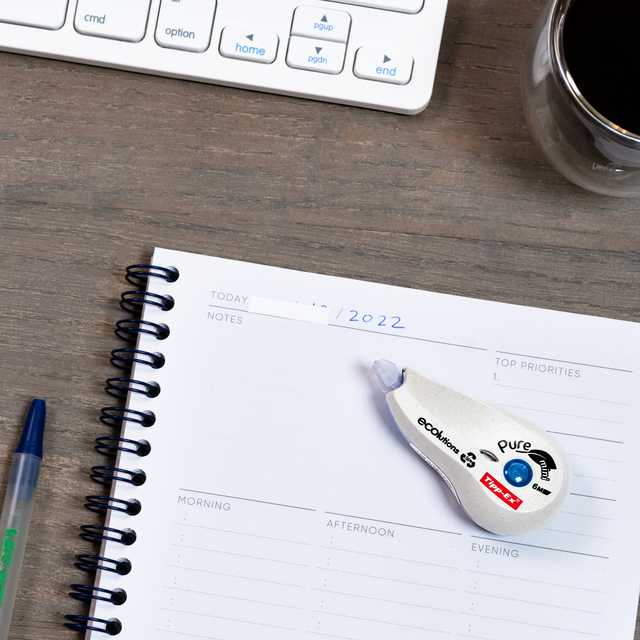 * Handig voor thuis, op kantoor of op school. * Correctieroller gemaakt uit 94% gerecycled materiaal. * Lengte tape 5mm breed en 6 meter lang. * Ecolutions Tape is eenvoudig in gebruik en garandeert nette en precieze correcties. 1 stuk