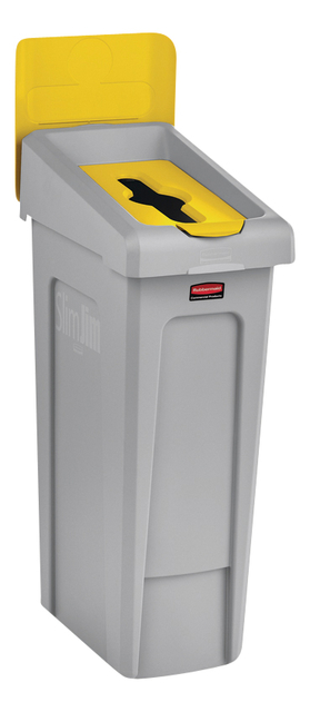 * Maak je eigen recyclestation met de Rubbermaid Slim Jim! * Afvalbakken en bovenstukken zijn in verschillende kleuren verkrijgbaar. Klik ze eenvoudig aan elkaar en maak een recyclestation op maat. * Moedig afvalscheiding aan met labels en verschillende bovenstukken: blauw bovenstuk met sleuf voor papier, een groen of bruin bovenstuk met ronde gaten voor flesjes of blikjes. * Vier geïntegreerde ventilatiegaten creëren een luchtstroom in de afvalbak. Een volle afvalzak kan daardoor makkelijk worden verwisseld. * Ontworpen voor de krapste ruimtes past de Rubbermaid Slim Jim overal, zoals bijvoorbeeld in kantooromgevingen of in de horeca.