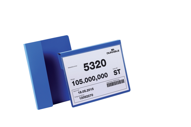 uiteinde van een pallet bevestigd worden. * Gekleurde kunststof achterzijde en transparant venster, gemaakt van extra sterk polypropyleen. * Geschikt voor scanners en scheurbestendig. Inserts kunnen snel worden vervangen. * Download gratis inserttemplates op www.duraprint.eu. * Binnenafmetingen: A5 liggend formaat (210 x 148 mm) * Buitenafmetingen: 230 x 259 mm