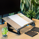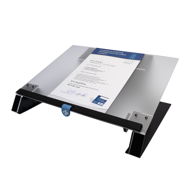 * Met de R-Go Read2Write documenthouder wordt je onbewust gestimuleerd om in een rechte houding te werken. Deze lichtgewicht documenthouder is eenvoudig te transformeren in een schrijfblad door het blad naar je toe te trekken. Door het werk naar je toe te halen, voorkom je een voorovergebogen houding. * Voor het maken van notities heeft de Read2Write aan de voorzijde een zachte polsondersteuning van soft foam. Dit voorkomt voorkomt vervelende druk op de polsen tijdens het schrijven. * Naast ergonomische kenmerken heeft deze documenthouder en lessenaar in 1 een uniek design. Hij is gemaakt van lichtgewicht aluminium met een dun blad van mat acrylaat. * Van lezen naar schrijven in één beweging. * Uniek design met ultradunne aluminium basis. * Soft foam polssupport. * Lichtgewicht. * Gemaakt in Nederland. * Specificaties; * Materiaal: Aluminium composiet / Matte acryl. * Draagvermogen: 5 kg. * Formaatpapier: A3. * In diepte verstelbaar. * In hoogte verstelbaar. * 2 standen. * Afmeting 168x320x460mm (HxLxB).
