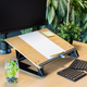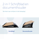 * Met de R-Go Read2Write documenthouder wordt je onbewust gestimuleerd om in een rechte houding te werken. Deze lichtgewicht documenthouder is eenvoudig te transformeren in een schrijfblad door het blad naar je toe te trekken. Door het werk naar je toe te halen, voorkom je een voorovergebogen houding. * Voor het maken van notities heeft de Read2Write aan de voorzijde een zachte polsondersteuning van soft foam. Dit voorkomt voorkomt vervelende druk op de polsen tijdens het schrijven. * Naast ergonomische kenmerken heeft deze documenthouder en lessenaar in 1 een uniek design. Hij is gemaakt van lichtgewicht aluminium met een dun blad van eikenhout. * Van lezen naar schrijven in één beweging. * Uniek design met ultradunne aluminium basis. * Soft foam polssupport. * Lichtgewicht. * Gemaakt in Nederland. * Specificaties; * Materiaal: Aluminium composiet / eikenhout. * Draagvermogen: 5 kg. * Formaatpapier: A3. * In diepte verstelbaar. * In hoogte verstelbaar. * 2 standen. * Afmeting 168x320x460mm (HxLxB).