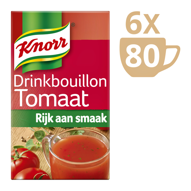 * Knorr Drinkbouillon tomaat is een heerlijke krachtige bouillon, voorzien van een verfijnde smaak door de toevoeging van vele kruiden. * Het is een lekker hartig tussendoortje en bevat bovendien slechts weinig calorieën per kop. * Een verpakking bevat 80 sachets waarmee je snel een hartige snack kan maken . * 1 sachet is goed voor één kop drinkbouillon. * Knorr Drinkbouillon Tomaat bevat geen conserveermiddelen en kunstmatige kleurstoffen. * Deze variant is daarnaast geschikt voor vegetariërs.