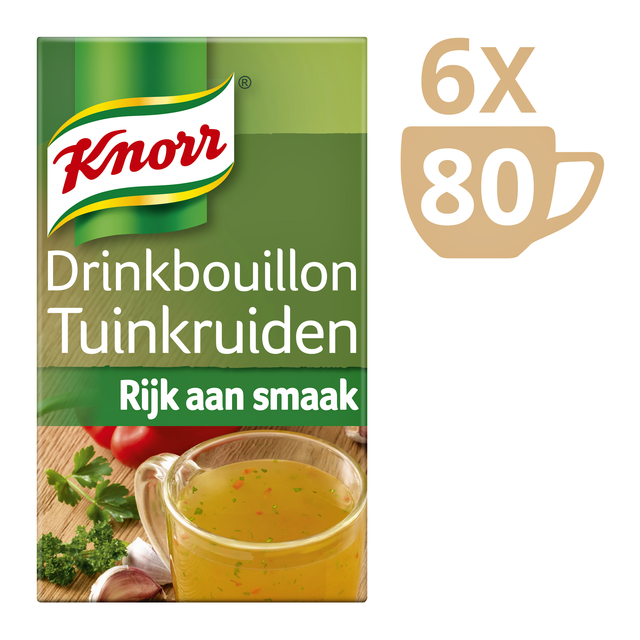 * Knorr Drinkbouillon tuinkruiden is een heerlijke krachtige bouillon, voorzien van een verfijnde smaak door de toevoeging van vele tuinkruiden. * Het is een lekker hartig tussendoortje en bevat bovendien slechts weinig calorieën per kop. * Een verpakking bevat 80 sachets waarmee je snel een hartige snack kan maken . * 1 sachet is goed voor één kop drinkbouillon. * Knorr Drinkbouillon Tuinkruiden bevat geen conserveermiddelen en kunstmatige kleurstoffen. * Deze variant is daarnaast geschikt voor vegetariërs.