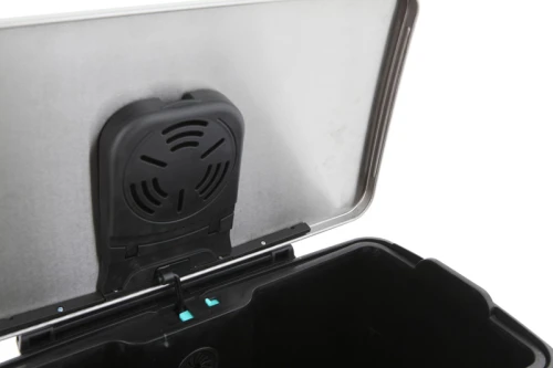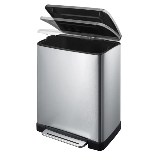 Stijlvolle rechthoekige pedaalemmer met extra breed pedaal, kunststof binnenemmer, gedempt deksel en stay-open functie. Aan de binnenzijde van het deksel is ruimte voor een carbonfilter om geurtjes te voorkomen (carbonfilter niet inbegrepen). Fingerprint Proof. Kleur: mat RVS. Formaat (mm) B 500 D 345 H 650