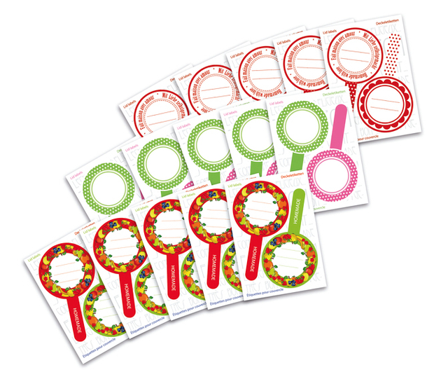 * Permanent zelfklevende, bont bedrukte papieren dekseletiketten. * Ideaal voor het versieren en beschrijven van eigen baksels en brouwsels of voor het beschrijven kruidenpotjes. * Voor elke gelegenheid het juiste motief voor het zelf beschrijven. * Onmisbaar - want het oog wil ook wat.