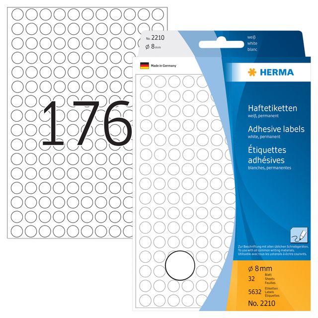 Etiket Herma 2210 Rond 8mm Wit 5632st