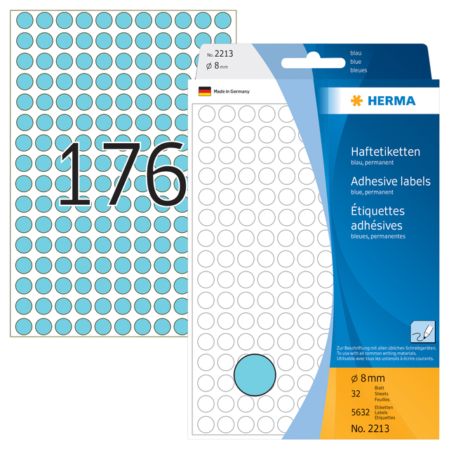 Etiket Herma 2213 Rond 8mm Blauw 5632st