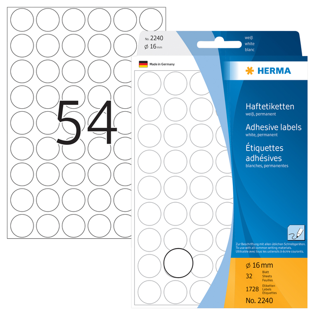 Etiket Herma 2240 Rond 16mm Wit 1728st