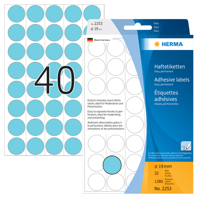 Etiket Herma 2253 Rond 19mm Blauw 1280st