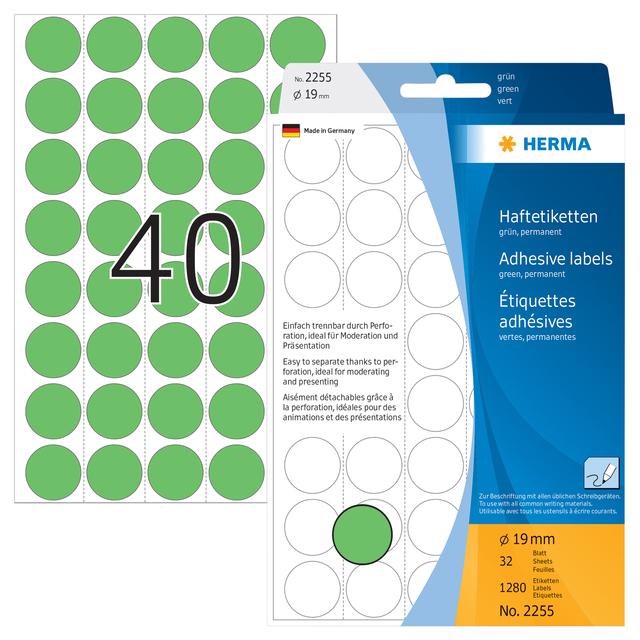 Etiket Herma 2255 Rond 19mm Groen 1280st
