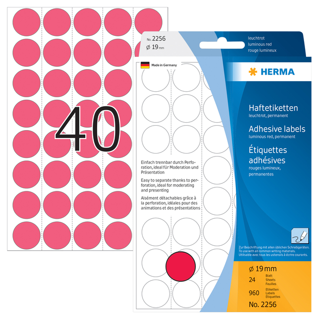 Etiket Herma 2256 Rond 19mm Fluor Rood 960st