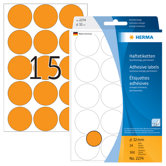 Etiket Herma 2274 Rond 32mm Fluor Oranje 360st