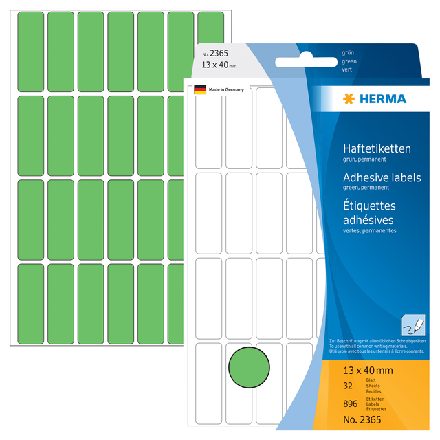 * Universele etiketten voor markeren, adresseren of organiseren. * Zelfklevende etiketten van hoogwaardig schrijfpapier. * Milieuvriendelijk: PEFC-gecertificeerd, chloorvrij gebleekt, oplosmiddelvrije contactlijm. * Voor handbeschrijving met alle schrijfmiddelen en schrijfmachines. 1 doos x 32 vel