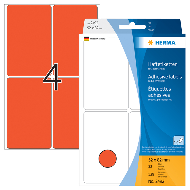 * Universele etiketten voor markeren, adresseren of organiseren. * Zelfklevende etiketten van hoogwaardig schrijfpapier. * Milieuvriendelijk: PEFC-gecertificeerd, chloorvrij gebleekt, oplosmiddelvrije contactlijm. * Voor handbeschrijving met alle schrijfmiddelen en schrijfmachines. 1 doos x 32 vel