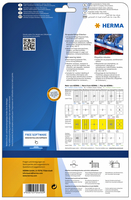 * Folie-etiketten: wit en mat op A4-vellen, zelfklevend. * Ideaal voor etiketteren op zwaar belaste plaatsen en geschikt voor buitengebruik: eigendomsetiketten, etalagestickers, attentie- en waarschuwingsplaatjes, labelen in het magazijn en in de productie. * Slijt- en weervast oppervlak, zeer sterk hechtend, verouderingsbestendig, olie en vuil afstotend, afwasbaar, temperatuurbestendig van -30 tot 80 °C, zeewaterbestendig. * Storingvrije verwerking dankzij veiligheidsrand rondom en optimale vlakligging. * Voor laserprinters en kopieerapparaten. * Niet geschikt voor inkjetprinters. Gratis softwareoplossingen: www.HERMA.nl/software.