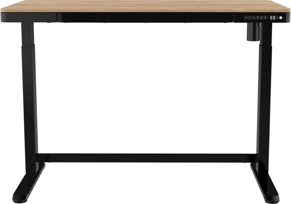 Euroseats zit/sta werkplek. Blad 120 bij 60 cm. Zwart frame en eiken kunststof blad