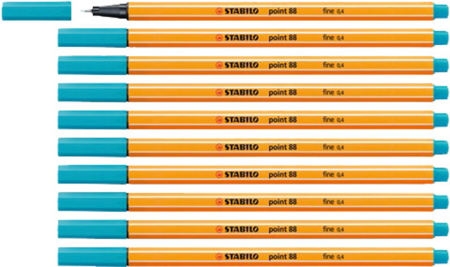 De Point 88: de ideale fineliner voor schrijven, tekenen, schetsen en onderstrepen. Dankzij het brede scala aan prachtige kleuren, waaronder pastel- en neonkleuren, heb je een complete creatieve selectie binnen handbereik. De met metaal omhulde punt en de uitstekende bescherming tegen uitdrogen zorgen voor een hoge kwaliteit en maken van de STABILO point 88 een duurzame fineliner waarop je elke dag kunt vertrouwen. Dankzij de punt die met metaal is omvat, is de fineliner ideaal om te gebruiken in combinatie met een liniaal of sjabloon, er ontstaan geen vervelende vegen meer. Perfect voor creatieve ideeën, of thuis, op school en op het werk. De Point 88 is extra duurzaam, vanaf heden is de dop en penbehuizing gemaakt van 96% bio-gebaseerd kunststof volgens massabalans benadering.