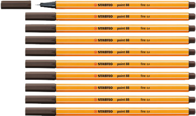 De Point 88: de ideale fineliner voor schrijven, tekenen, schetsen en onderstrepen. Dankzij het brede scala aan prachtige kleuren, waaronder pastel- en neonkleuren, heb je een complete creatieve selectie binnen handbereik. De met metaal omhulde punt en de uitstekende bescherming tegen uitdrogen zorgen voor een hoge kwaliteit en maken van de STABILO point 88 een duurzame fineliner waarop je elke dag kunt vertrouwen. Dankzij de punt die met metaal is omvat, is de fineliner ideaal om te gebruiken in combinatie met een liniaal of sjabloon, er ontstaan geen vervelende vegen meer. Perfect voor creatieve ideeën, of thuis, op school en op het werk. De Point 88 is extra duurzaam, vanaf heden is de dop en penbehuizing gemaakt van 96% bio-gebaseerd kunststof volgens massabalans benadering.