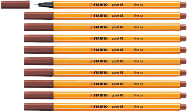 * Verkrijgbaar in 65 kleuren * De fineliner STABILO point 88 in de kleur: sienna (75)