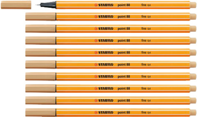 * Verkrijgbaar in 65 kleuren * De fineliner STABILO point 88 in de kleur: licht oker (88)