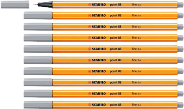 * Verkrijgbaar in 65 kleuren * De fineliner STABILO point 88 in de kleur: middelkoud grijs (95)