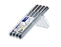* Een fijnschrijver om te schrijven, te schetsen en te tekenen. * De lange metalen punt is ideaal voor het gebruik met linialen of sjablonen. * Deze fijnschrijver met gepigmenteerde zwarte inkt is documentecht, lichtecht, waterbestendig en weggombaar op kalkpapier, maar loopt niet uit wanneer deze met een tekstmarker wordt overlijnd. * In de Staedtler box zitten 4 fijnschrijvers met de volgende puntdiktes 0.1-0.3-0.5-0.7mm. * De fijnschrijver met PP lichaam garandeert een langere levensduur. * Deze Staedtler fijnschrijver voldoet aan de ISO14145-2 norm en heeft Cap off, kan 18 uur open liggen zonder uitdrogen. 1 pak x 4 stuk