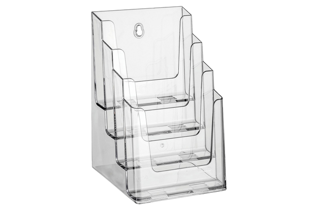 * Folderbakje van glashelder, recyclebaar polystyreen. * Ook geschikt voor wandmontage. * In verschillende formaten verkrijgbaar. 1 stuk
